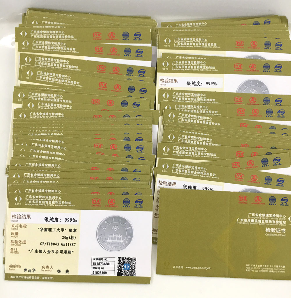 • 廣東省質監白銀含銀量金銀成色品質鑒定證書