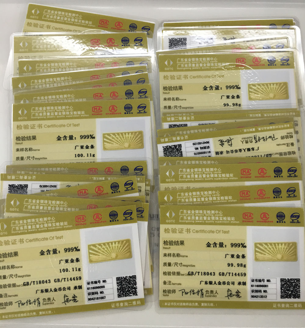 • 國家質監部門黃金金銀鑒定證書