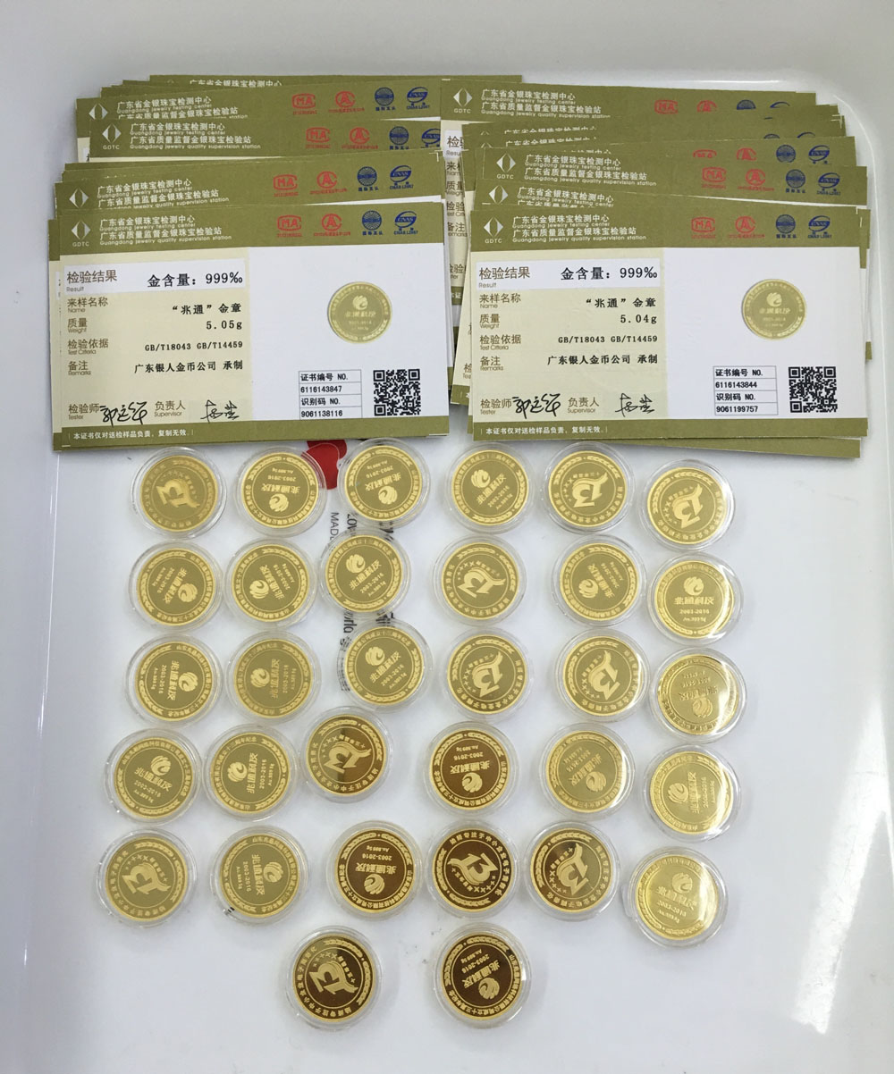 • 國家權威機構純金紀念幣含金量檢測證書