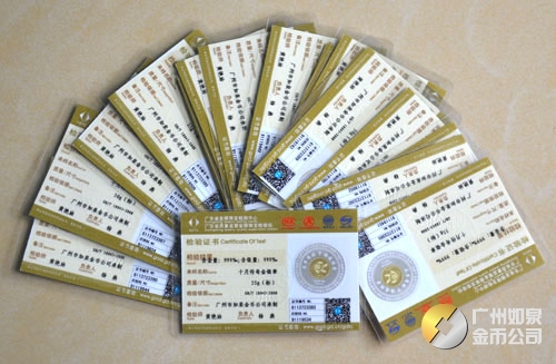 廣東省質監局黃金千足金純金鑒定證書