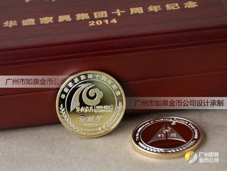 中山華盛集公司周年慶典制作純金紀念幣鑲水晶擺件