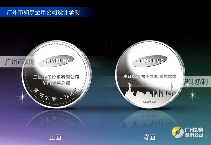 廣州市如泉金幣公司依托上海造幣廠和深圳國寶造幣廠等造幣公司以及金銀制品廠,設計定做紀念幣、紀念章、金銀幣、金銀章、金銀條,采用造幣工藝、選用千足金銀,個性定制金幣、定做銀幣、訂做金條、訂制銀條、制作紀念銀幣、制造紀念金幣、加工紀念銀章、生產紀念金章,純金純銀鑄造、全部國檢、權威檢測。