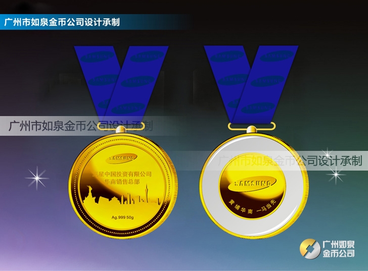 2014年4月:定制 三星廣州公司 定制純金鑲玉獎牌