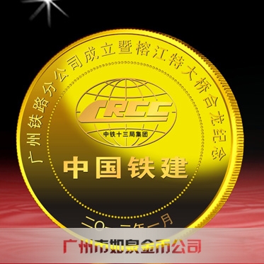 2013年1月:定制中國(guó)鐵建大橋合龍定制紀(jì)念千足金金幣制作