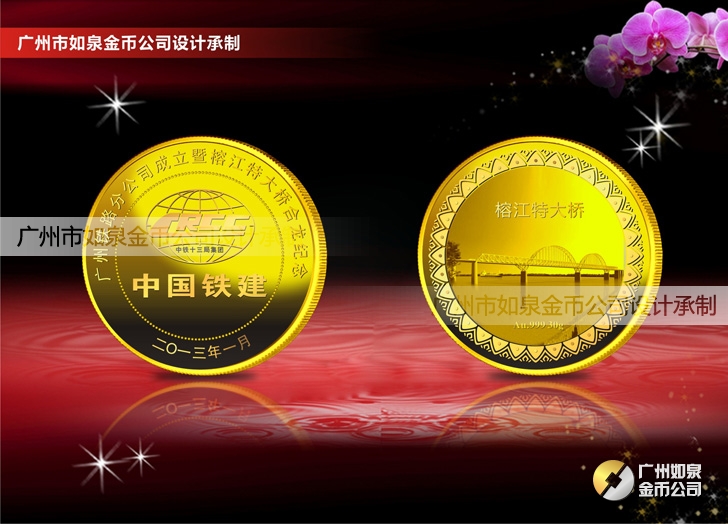定制中國(guó)鐵建大橋合龍通車定制紀(jì)念千足金金幣制作