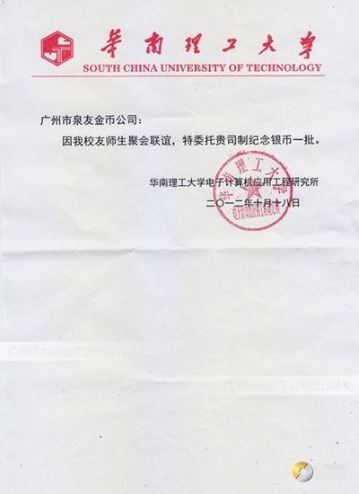 2012年10月:華南理工大學(xué)同學(xué)師生聚會制作紀(jì)念金幣定制