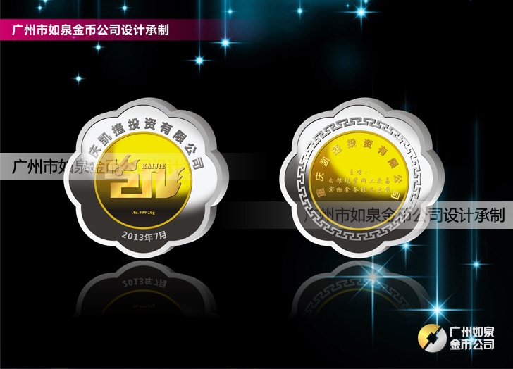 2013年7月:紀念幣制作廠家定制重慶凱捷金鑲銀紀念幣