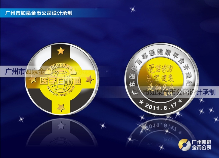 廣州金幣公司定制金包銀紀念幣醫(yī)學(xué)百事通紀念金幣