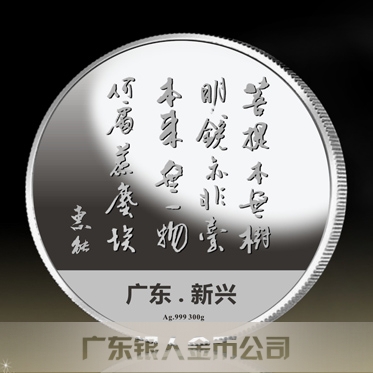 定制“菩提本無樹,明鏡亦非臺(tái),本來無一物,何處惹塵埃。”——《六祖壇經(jīng)》惠能大師名言純銀紀(jì)念幣