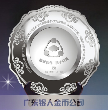 定做熱烈慶祝深圳金溢科技與支付寶達成ETC戰略合作伙伴純銀紀念盤制作