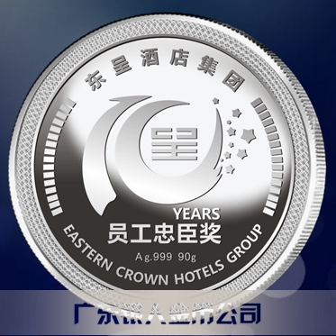 2015年1月:東呈酒店集團十年老員工純銀牌制作紀念銀章定制