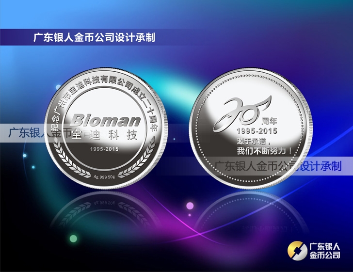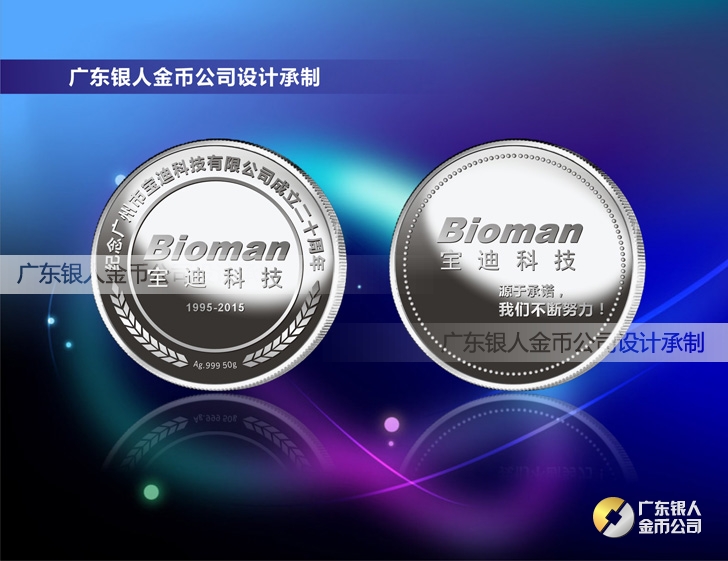 2015年2月定制:廣州寶迪科技公司成立20周年純銀紀念章定制