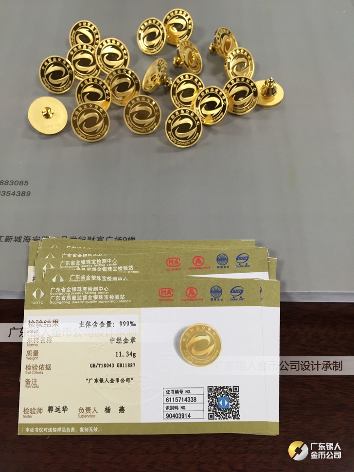 2015年3月定制 中經萬達金銀純金胸章定制、制作純金胸章