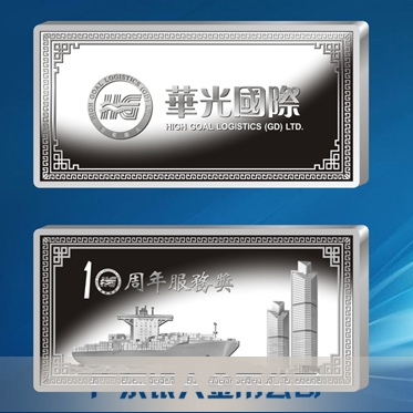 2015年4月訂制 廣東華光企業10周年紀念銀條、銀牌銀章銀磚