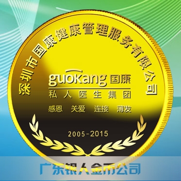 2015年9月定制 深圳國(guó)康私人醫(yī)生醫(yī)院十周年純金金幣定制