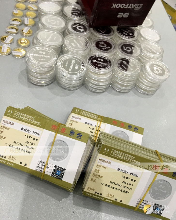 廣東銀人金幣公司承接客戶個性化定制的金銀幣、金銀章、金銀條、金銀牌、金銀盤均由國家質監部門、嚴格檢測、權威鑒定: