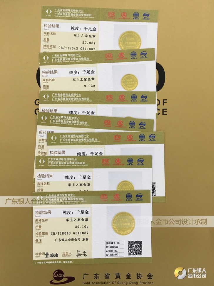 廣東銀人金幣公司承接客戶個性化定制的金銀幣、金銀章、金銀條、金銀牌、金銀盤均由國家質監部門、嚴格檢測、權威鑒定: