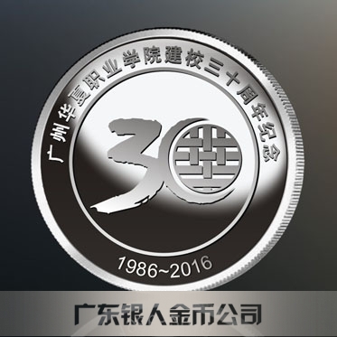 2016年4月定制 廣州華夏職業學院校慶30周年紀念銀幣定制