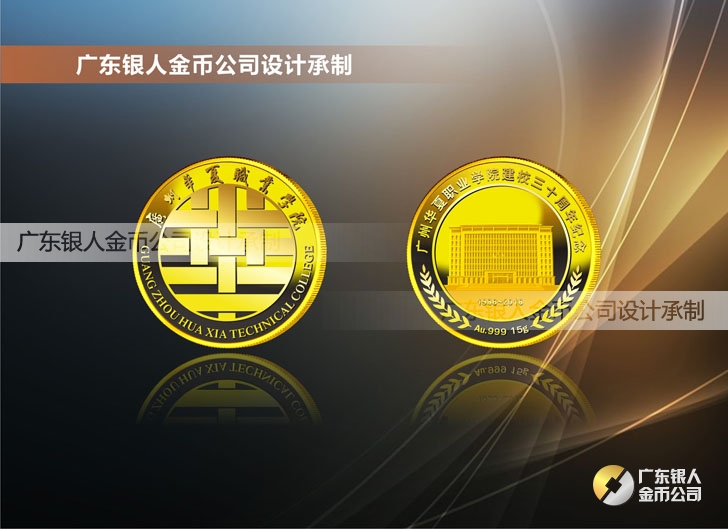 2016年4月定制 廣州華夏職業學院成立30周年紀念金幣定制
