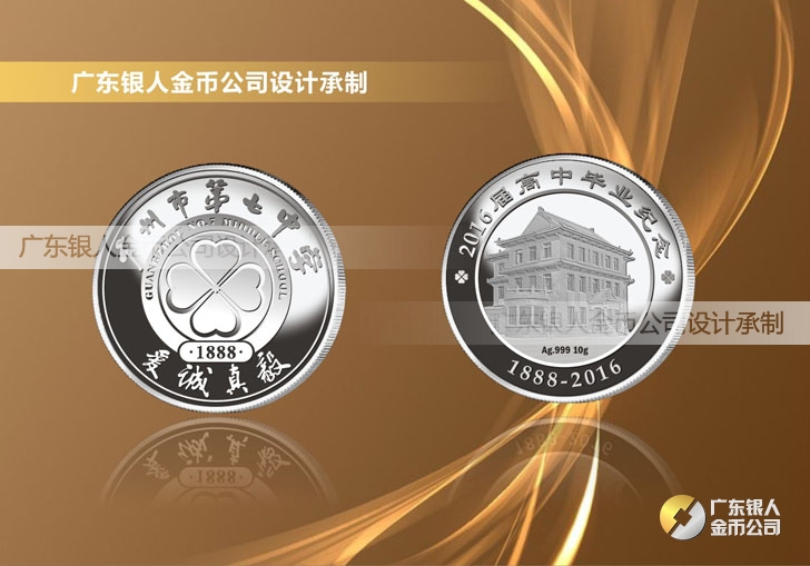 2016年4月定制 廣州市第七中學校慶128周年純銀紀念章定制