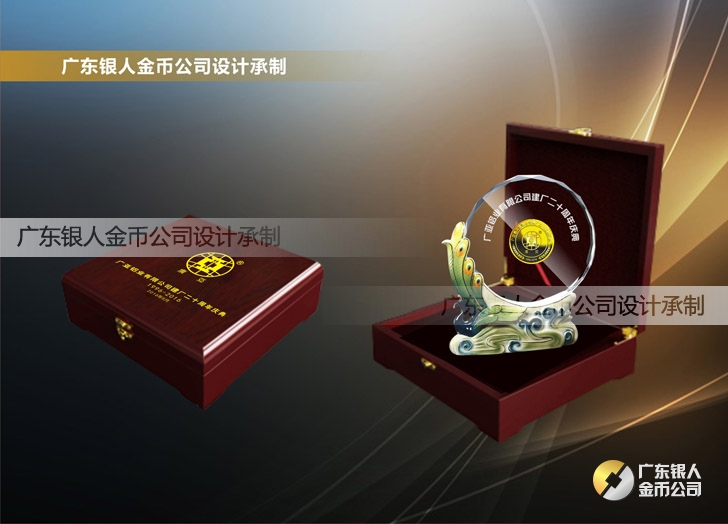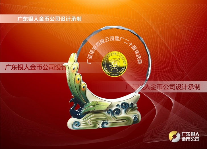 2016年4月定制 廣亞鋁業集團20周年慶紀念幣鑲水晶擺件定制