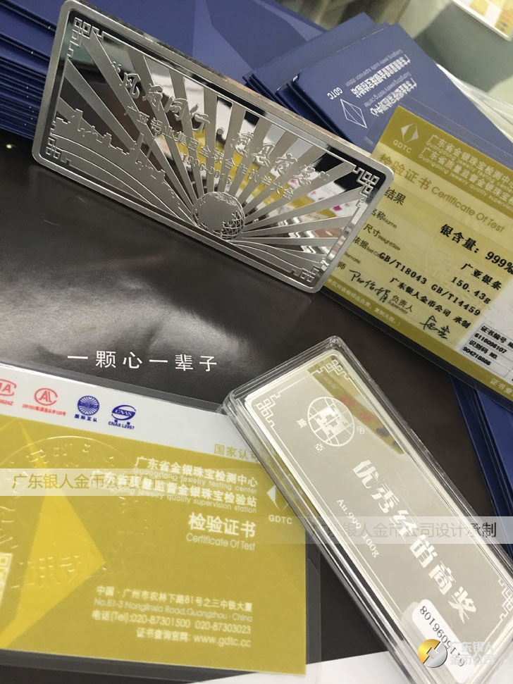 廣東銀人金幣公司承接客戶個性化定制的金銀幣、金銀章、金銀條、金銀牌、金銀盤均由國家質監部門、嚴格檢測、權威鑒定: