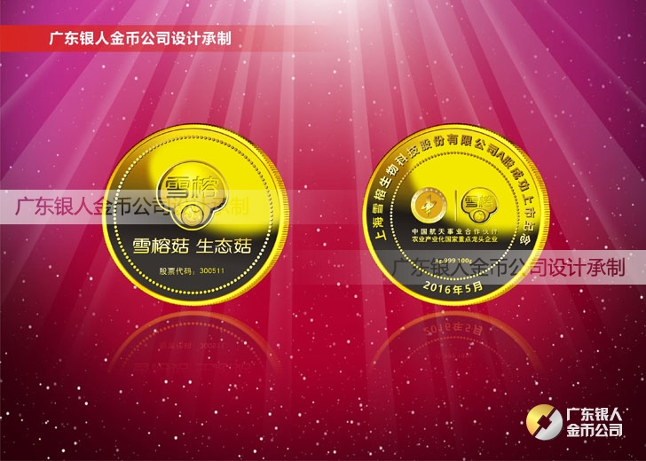2016年4月定制 上海雪榕生物公司股票發行純金紀念幣定制