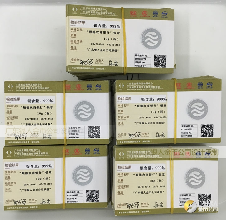 廣東銀人金幣公司承接客戶個(gè)性化定制的金銀幣、金銀章、金銀條、金銀牌、金銀盤(pán)均由國(guó)家質(zhì)監(jiān)部門(mén)、嚴(yán)格檢測(cè)、權(quán)威鑒定: