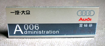 一汽 — 大眾汽車有限公司——旗下品牌“大眾”、“奧迪”:授權(quán)專營店的員工胸牌,4S店銷售員工牌的設(shè)計(jì)與制作。(由長春吉廣傳媒集團(tuán)監(jiān)制。)
