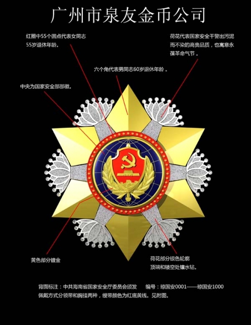 2010年12月海南省國(guó)家安全廳功臣榮譽(yù)獎(jiǎng)?wù)轮谱?功臣榮譽(yù)勛章定制