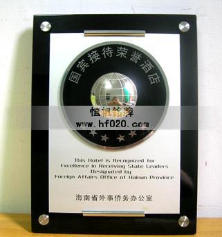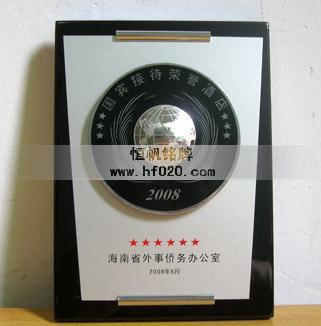 海南省人民政府外事僑務(wù)辦公室——國賓接待榮譽(yù)酒店高檔獎牌與榮譽(yù)獎牌的設(shè)計與生產(chǎn)。