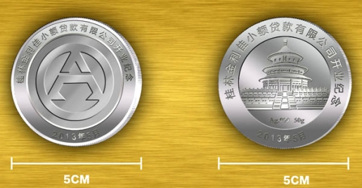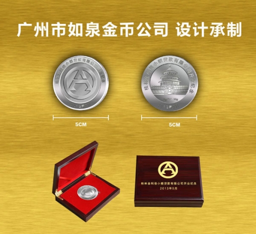 (廣西桂林金利佳小額貸款公司開業紀念幣定做、定制50克999純銀紀念章、50克999純銀紀念幣定制)