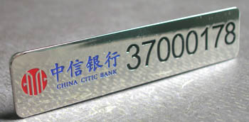 中信銀行——銀行職員佩戴的高檔不銹鋼胸牌、不銹鋼制工號牌、不銹鋼工牌\中信銀行胸牌,中信銀行工牌,中信銀行工號牌制作的設計與制作。