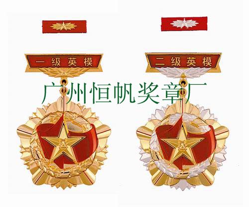 (圖為一級(jí)英雄模范勛章、二級(jí)英雄模范勛章。 )