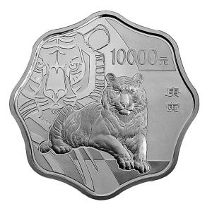 ③肖虎梅花形金幣