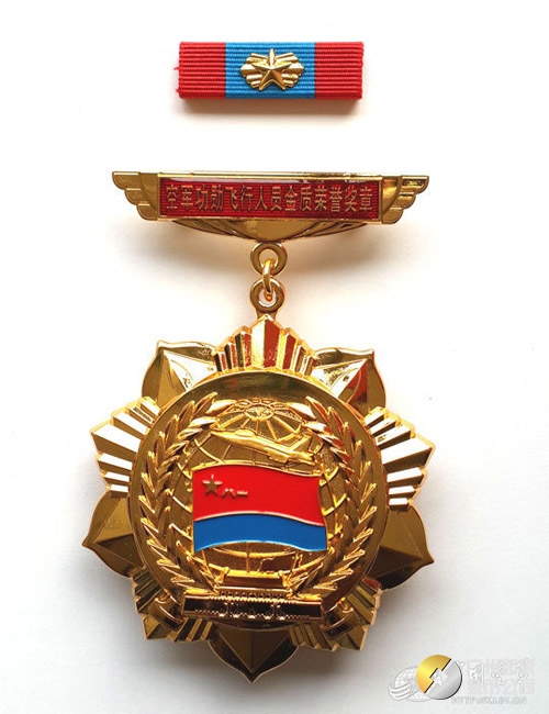 空軍功勛飛行人員金質榮譽獎章,主要授予獲得一等功以上獎勵的飛行人員;空軍飛行人員金(銀)質榮譽獎章,主要授予因連續安全飛行榮立二等功后再次榮立二(三)等功的飛行人員;空軍飛行人員銅質榮譽獎章,主要授予因連續安全飛行首次榮立二等功的飛行人員。圖為飛行金質獎章實物。