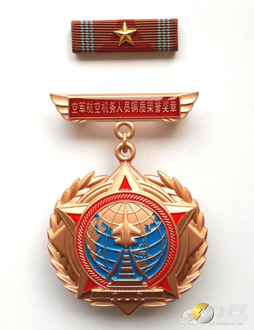空軍功勛飛行人員金質榮譽獎章、空軍飛行人員金質榮譽獎章、空軍航空機務人員金質榮譽獎章由空軍審批;空軍飛行人員銀(銅)質榮譽獎章、空軍航空機務人員銀(銅)質榮譽獎章由軍區空軍審批(空軍直屬單位的飛行人員、航空機務人員以及其他單位的正師職飛行人員、航空機務人員由空軍審批)。圖為飛行銅質獎章實物。