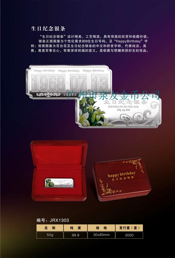 生日紀念銀條、生日銀條定做、生日紀念純銀銀條(圖)