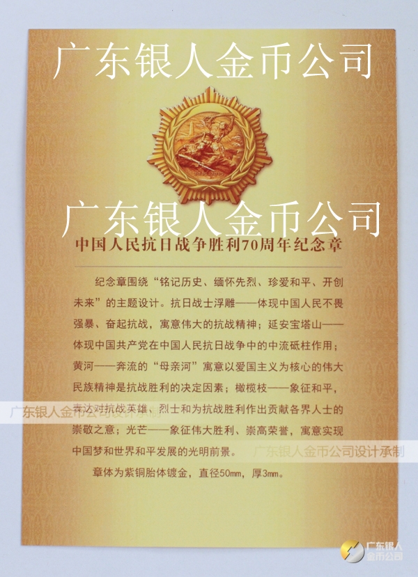 (中共中央、國務院、中央軍委授予頒發的中國人民抗日戰爭勝利70周年紀念章)