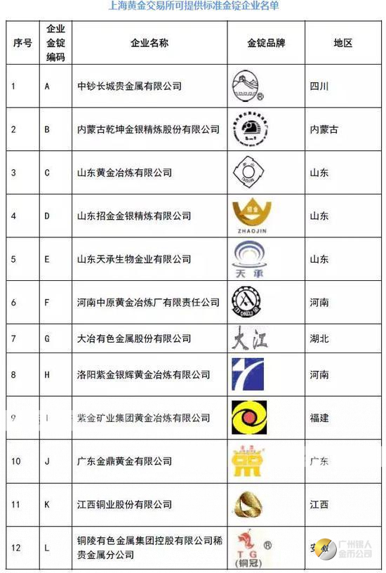 廣東銀人金幣公司發布上海黃金交易所可以提供標準金條、標準銀條、標準金磚、標準銀磚、標準金錠、標準銀錠等金條現貨、銀條現貨的指定供貨單位,并經上海黃金交易所目前可提供標準金錠、金條、銀錠企業均經過嚴格認證,認證企業名錄及核實過的官方法定國標認證公司名稱、企業名單。