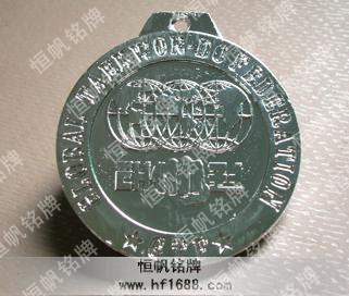 精美獎章系列,合金材料,分金、銀、銅三種色彩,金屬模具沖壓,有掛繩,獎章中間圖案與文字可貼上去,也可一次性沖壓鑄出來立體效果,也可根據客戶設計稿定制。高檔,適合活動、獎項等方面用。俗稱獎章、勛章、掛式獎牌。