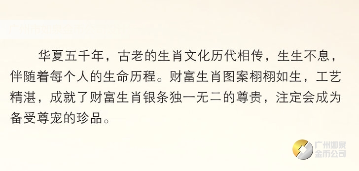 廣州市如泉金幣公司依托上海造幣廠和深圳國寶造幣廠等造幣公司以及金銀制品廠,設計定做紀念幣、紀念章、金銀幣、金銀章、金銀條,采用造幣工藝、選用千足金銀,個性定制金幣、定做銀幣、訂做金條、訂制銀條、制作紀念銀幣、制造紀念金幣、加工紀念銀章、生產紀念金章,純金純銀鑄造、全部國檢、權威檢測。