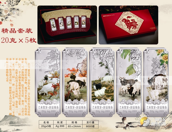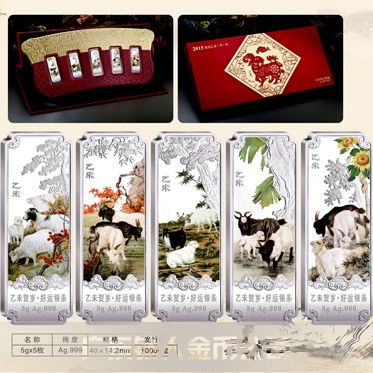 【Au.999純銀羊年賀歲銀條重量規(guī)格】 5克x5根、10克x5根、20克x5根盒裝、套裝