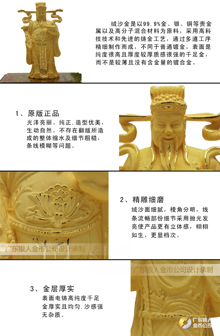 【純金純銀】 千足鑄金銀擺件、絨沙金銀擺件禮品
