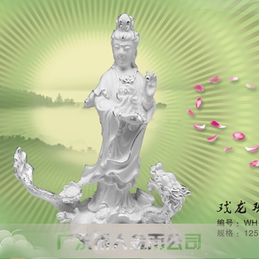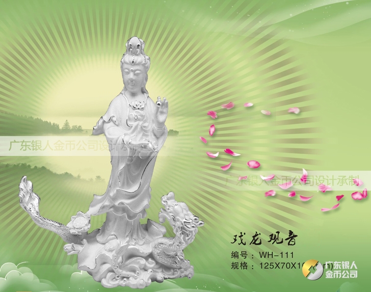 海上戲龍觀音純銀擺件、純銀觀音銀制品純銀工藝品擺件