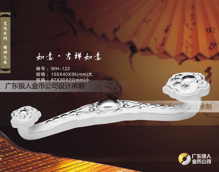 吉祥如意純銀如意擺件禮品定制、純銀如意擺件