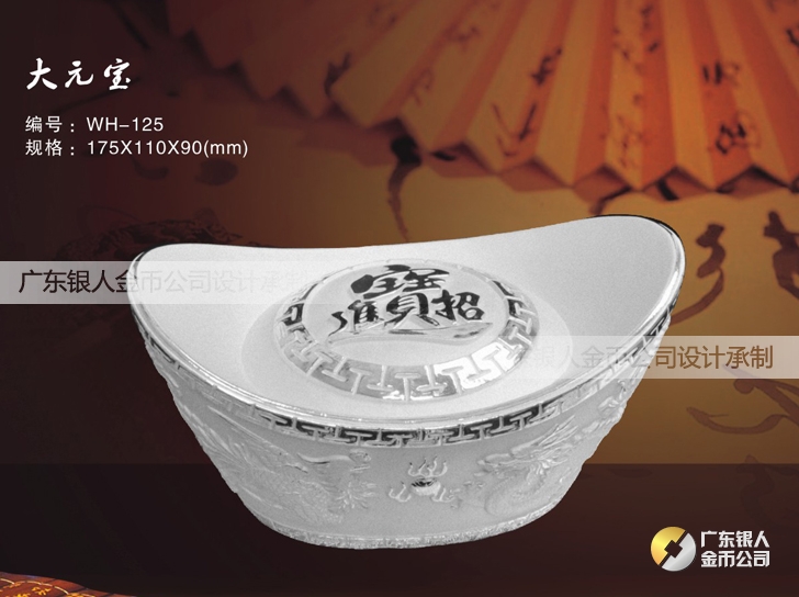 招財進寶銀元寶制作、純銀銀元寶定制、定做純銀銀元寶